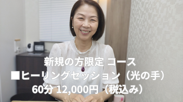一般社団法人日本スピリチュアル普及協会が運営する東京都港区赤坂の占い館、占い&スピリチュアルカウンセリング「光のとびら」赤坂サロン所属の真理子先生の新コース「ヒーリングセッション(光の手)」のご予約を開始いたしました。