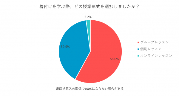 「グループレッスン」58%、「個別レッスン」39.9%、「オンラインレッスン」2.2%という結果でした。