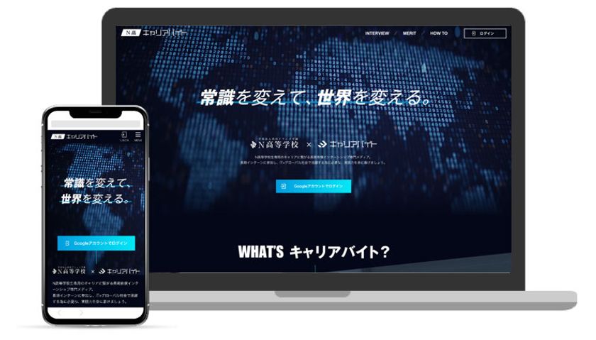 今回、N高生専用の長期インターンシップ情報サイト『N高キャリアバイト』を開設することで、N高生が実際の就業に即した実践的なスキルを身につけられる機会を創出します。N高での授業で得た知識をインターンシップで実践することで、学業とのシナジーを生み出し、N高生の能力・技術の向上並びに就業観・労働観の形成と確立を目指してまいります。