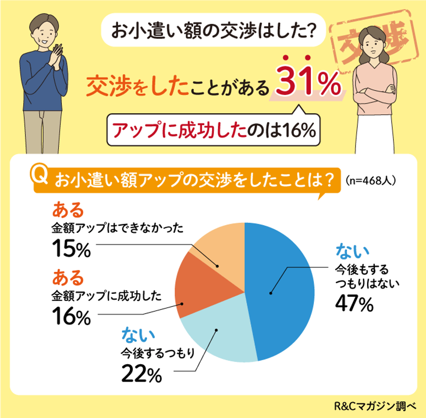 ・お小遣い額アップの交渉経験がある夫婦は31%