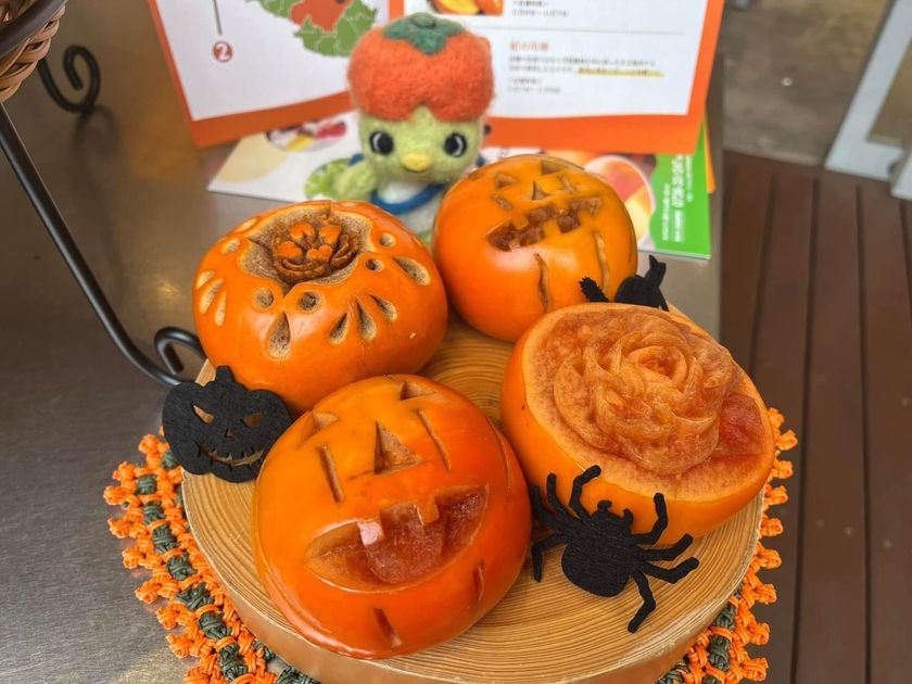 さらに、柿をカッティングした「柿のカービング作品」を展示したフォトスポットでは、多くのお客様が写真撮影を楽しんでいらっしゃいました。