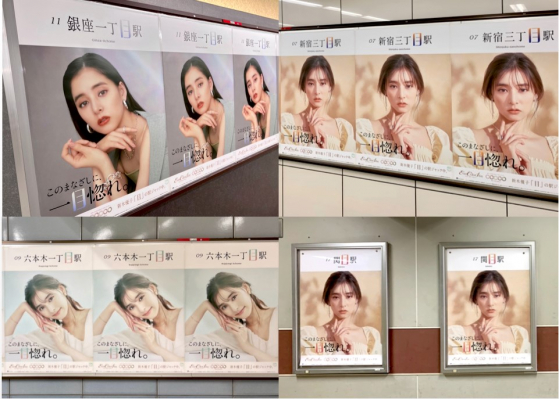 3月から新たに新木優子さんをモデルに迎え、さらに皆様の「目」に寄り添っていきたいという思いから、今回は全国「目のつく駅」への広告展開をさせていただきました。駅ごとに「目」の色が違っており、どの駅の「目」も可愛くナチュラルに盛れていると思います。
