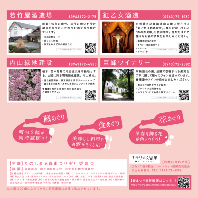 お問合せ先:久留米観光コンベンション国際交流協会 田主丸事務所