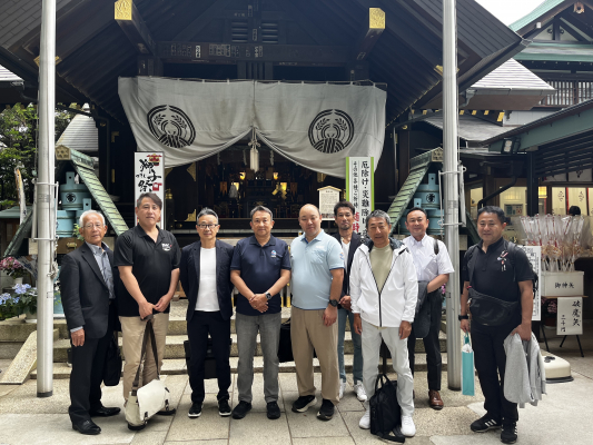 「スクーバダイビングの日」にあたる5月24日が土曜日となる本年は、その前日である5月23日に参拝が行われました。会場となった波除神社は、東京都中央区築地に鎮座する由緒ある稲荷神社で、祭神に倉稲魂命(うがのみたまのみこと)を祀っており、「災難を除き、波を乗り切る」ご利益で広く知られています。江戸時代、明暦の大火後の埋め立て工事が荒波によって難航した際、海上に光を放って漂った御神体を祀ったところ波が静まり、無事に工事が完了したという伝承を持ち、多くの参拝者に親しまれています。