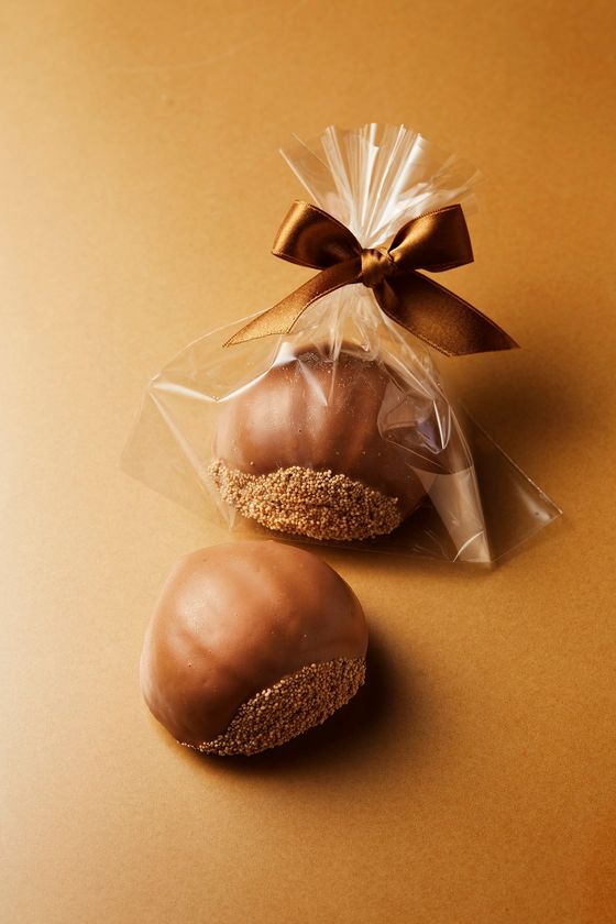 ブロンドチョコレートに、ミックスナッツやコクの実をトッピング。香ばしく、ほんのり甘く塩気もある独特な味わいが特徴の秋限定スイーツです。ワインやお酒との相性も良く、お子様にも喜んでいただけます。