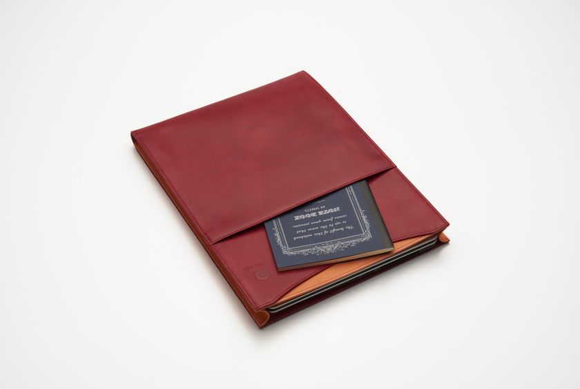 更に外側には名刺や付箋がぴったり入る浅めのサブポケット、そして手帳やノートにぴったりなA4のクリアファイル分が入る深めのアウターポケットのふたつを付けることで、利便性にもこだわりました。