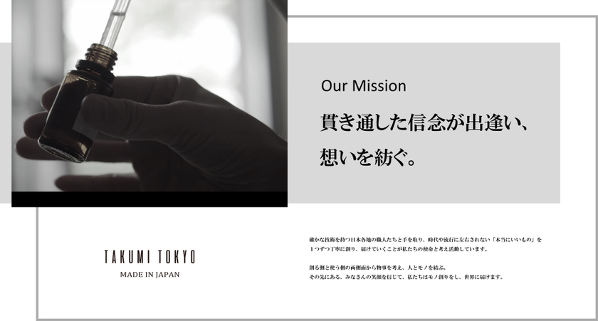TAKUMI TOKYOが掲げる使命は「貫き通した信念が出逢い、想いを紡ぐ」。