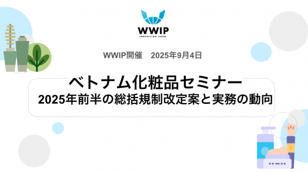 株式会社ワールドワイド・アイピー・コンサルティングジャパン (以下「WWIP」) は、2025年9月4日(木)14:00~16:00に、「ベトナム化粧品セミナー:2025年前半の総括規制改定案と実務の動向」を開催いたします。