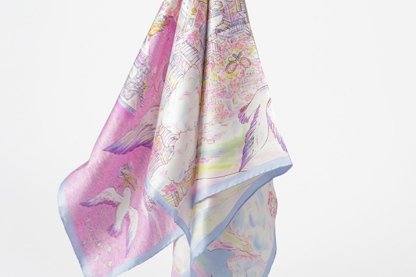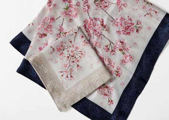 ”職人の手”により手間をかけることを惜しまず丁寧な作業を重ねることで生み出されたシルクスカーフ。季節の贈り物や海外へのお土産に、春をまとうスカーフをお楽しみください。