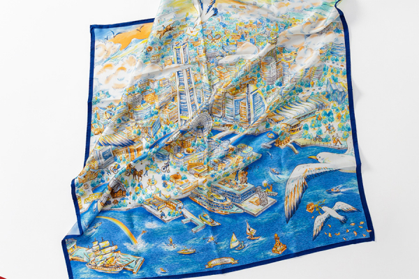 賑やかな横浜の街の様子を、一枚のスカーフにおさめました。
