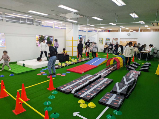 3歳~小学6年生を対象とし、体育で行う跳び箱やマット運動、鉄棒などの器械体操を中心とした体操の授業と、特殊なマットの上で走ったりジャンプしたりすることで遊びの中から自然と体幹を鍛えられる体幹トレーニングを合わせたクラスです。また、脳・神経系統が著しく発達するプレゴールデンエイジ期・ゴールデンエイジ期に様々な動きから刺激を与えることで運動能力を高めることが可能です。