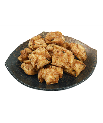 国内産もち米100%の生地に、北海道産の昆布を練り込み、どこか懐かしくも新しい甘だれ醤油味に仕上げたソフトな揚げおかき。