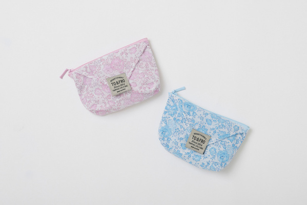 LIBERTYとのコラボレーション仕様のオーガナイザーには、ファクトリーブランドとして生地から生産するTO&FROがこだわって織り上げたオリジナル生地を使用しています。この生地は、風になびくほど薄くて透けることが特徴で、軽さと高機能性のバランスを限界まで追求しています。LIBERTY柄がプリントされた生地の隙間から、ファスナーを開けなくても中身がうっすら透けて見えるすぐれものです。