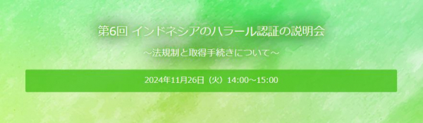 インドネシアのハラール認証製品に興味がある、あるいは将来ハラール認証を取得したいとお考えの皆様は、この機会にぜひ説明会にご参加ください。