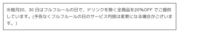 (※フルフルールの日(毎月20、30 日)はご提供しておりません)