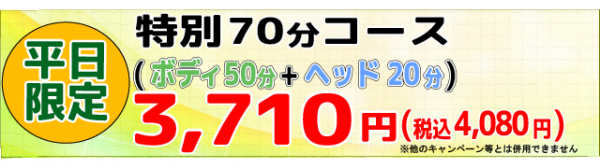 特別70分コース(ボディ50分+ヘッド20分) 3,710円(税込み4,080円)