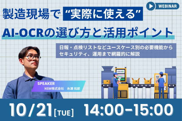 【10/21開催 オンラインセミナー】製造現場で“実際に使える”AI-OCRの選び方と活用ポイント