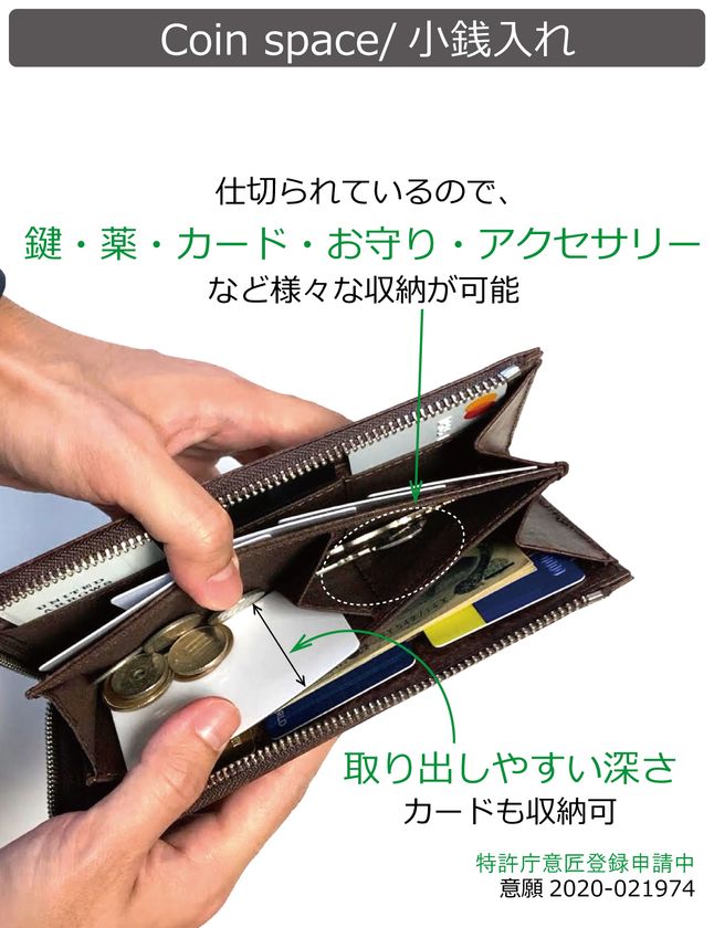 2. 取り出しやすい深さに設計!小銭や鍵などの取り出しがラクラク<意匠登録申請中2>