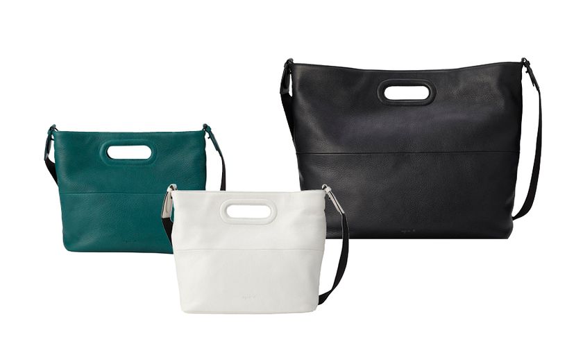 コーディネートの仕上げには、スクエアなシルエットのハンドル部分にカッティングを施し、レトロに仕上げたバッグを合わせて。幾何学的なウェアと組み合わせればこなれたスタイルが完成します。トップハンドルや金具のデザインがレディな佇まいのクラシカルなバッグ、“miyuki”もアニエスベーのお気に入り。