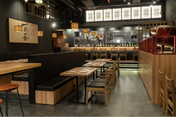 インド経済の中心地ムンバイの高級大型モール「フェニックスモール・パラディウム」に誕生した「Japanese Grill & Sake ROBATA KUURAKU Phoenix Palladium(炉端くふ楽フェニックスパラディウム店)」は、97席を備える大型店で、日本食文化を体験できる“ライブ感のある炉端焼き”をコンセプトとしています。