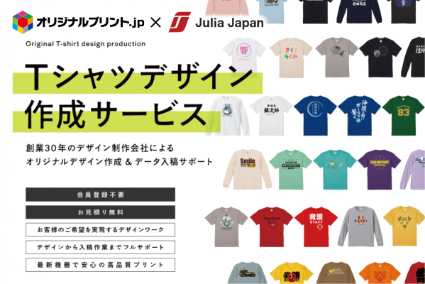 そこで、オリジナルTシャツでおなじみのオリジナルプリント.jpが、プロデザイナー集団「ジュリアジャパン」とタッグを組み、経験豊富なプロのデザイナーが、 あなたの想いを丁寧にヒアリングし、デザイン作成からプリント注文、納品までワンストップでサポートする「Tシャツデザイン作成サービス」を提供開始することになりました。