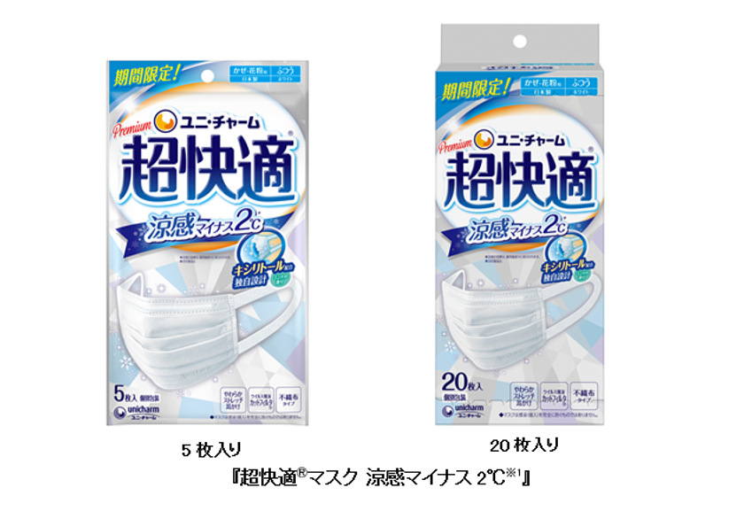 キシリトール配合で表面温度を下げる『超快適(R)マスク 涼感マイナス2℃※1』を期間限定品として発売