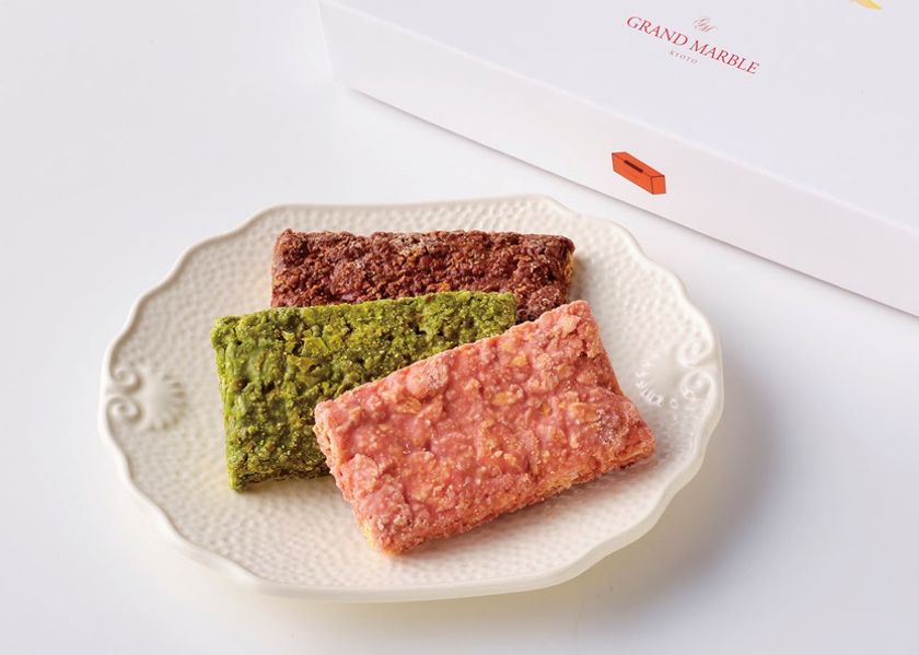 京のロシェはマーブルデニッシュに口どけの良いショコラをからめた、風味豊かなサクサクのクランチチョコレートです。フレーバーは「ショコラオレンジ」、「祇園辻利抹茶&アーモンド」、「濃厚いちご」の3種類。大阪のお土産におすすめです。