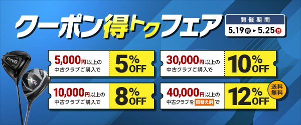 ・ブロンズクーポン:5,000円以上の中古ゴルフクラブ購入時 → 5%OFF