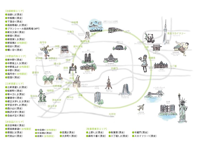 当社が提供している「シェアドアパートメント」は、都内を移動ができるだけでなく、家賃3万円台から東京に住める若者に優しい物件となっております。また、価格も家賃と光熱費がサブスクリプション(定額)のため、安心して利用が可能です。特に、下記が皆さまから人気のサービスになります。