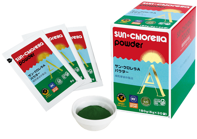当社は、NSFアンチドーピング認証、インフォームドスポーツ認証という2つのアンチドーピング認証を取得した「サン・クロレラ A パウダー」を提供します。当製品は、緑藻類の一種であるクロレラを100%使用した健康食品です。クロレラは植物性の良質なタンパク質をはじめ、ビタミン、ミネラル、食物繊維や葉酸など身体に不可欠な栄養素がバランスよく含まれているプラントベース・ホールフードで、近年クロレラの持つ栄養成分が注目され、多くのアスリートに活用いただいております。