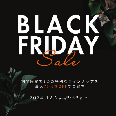年に1度の \ BLACK FRIDAY SALE / を今年も開催。最大 75.6% OFFでご案内します。