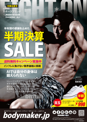 6月21日(水)より8月末日(予定)まで、BODYMAKER公式サイト及び、直営店舗にて「2023年半期決算SALE」をスタートします。同時に同タイトルのDMを発行しました。今回は「インフレに負けない限界価格に挑戦!」をコンセプトに、機能性を追求した新商品など「最大半額」大幅に値下げ品多数掲載!また、送料無料キャンペーンも行います。DM・BODYMAKER公式サイトともに衝撃価格の連続です。今年もBODYMAKER(ボディメーカー)は、限界価格に挑戦し続けます。ぜひ 一度ご覧ください。
