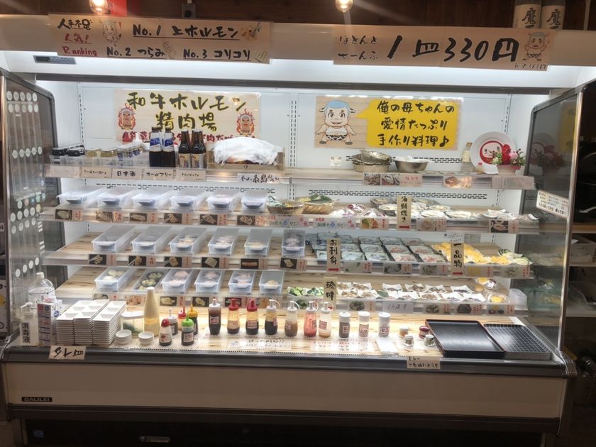 牛タン・牛ハラミ・ゲタカルビ・丸腸・上ほる・鳥皮・貝柱・海老・ほたて・煮魚・お刺身・ポテトサラダ・酢もつ・もぎたてサラダなど