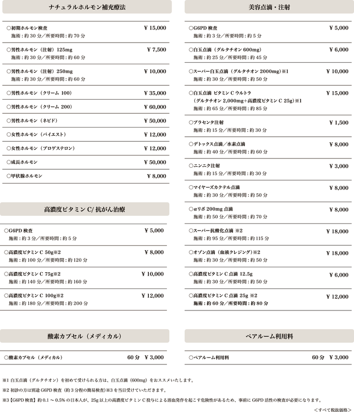 にしたんクリニックでは、一人でも多くの患者様に高濃度ビタミンC点滴療法を試していただきたいと考え、手ごろな価格のメニューを揃えています