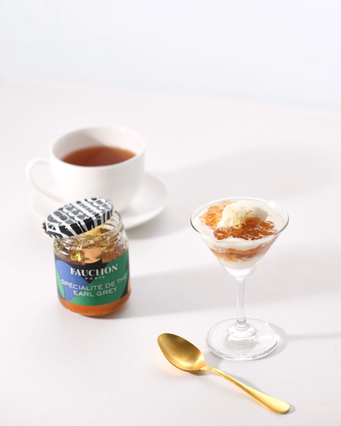 抽出したフォションのアールグレイ紅茶にレモンを加えて、爽やかなテイストでぷるぷるした食感が初夏にぴったりなジャムに仕上げました。ご自宅でアイスクリームやフルーツにあわせたり、マスカルポーネやヨーグルトなどに添えてオリジナルのパフェのようにして、簡単にデザートをアップグレードできます。また、お好みの分量を炭酸水やスパークリングワインで割って、爽やかなサマードリンクにしてもお楽しみいただけます。