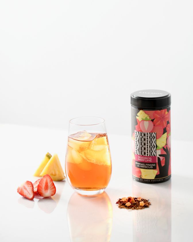 パイナップルと苺の果肉、ハイビスカスの花びらなどを加えた、心地よい酸味とほのかな甘さが感じられるルイボスティ。冷たくしてアイスティにしたり、水出しでいれたりしても味わえる、初夏にぴったりのフレーバーティです。カフェインレスなので、お休み前にリラックスしたい時などは温かいお湯でいれてお楽しみください。リーフタイプとティーバッグタイプの2種類をご用意しています。