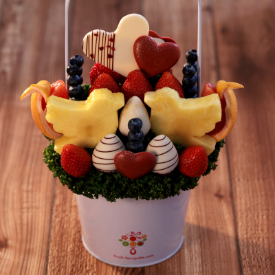 女性へのプレゼントとして、ヘルシーなフルーツとスイートなチョコレートをバランスよく盛り込みました。