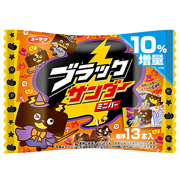 ・中身はレギュラー品「ブラックサンダーミニバー」と同じですので、安心してハロウィンパーティーでの配布用にもご利用いただけます。