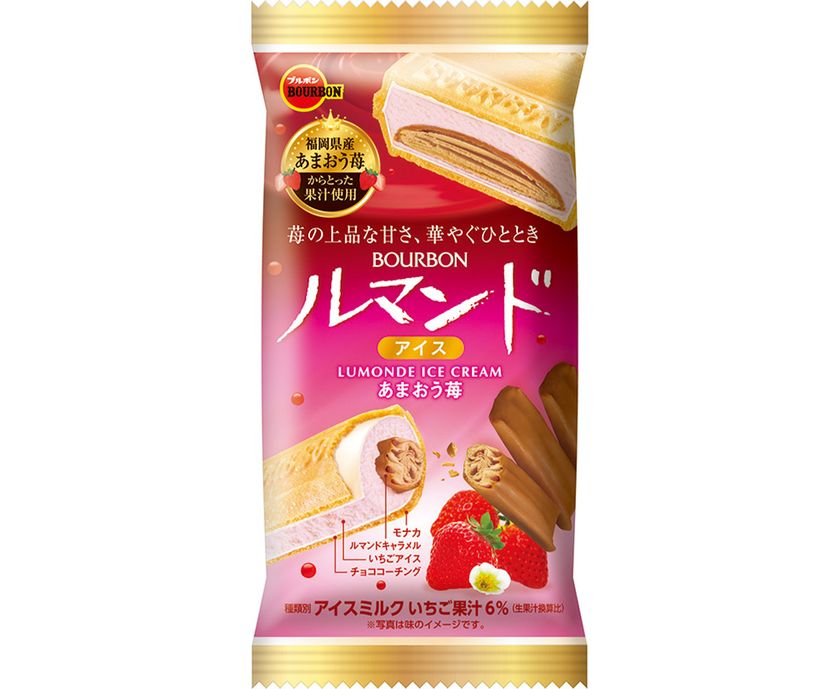 株式会社ブルボン(本社:新潟県柏崎市、代表取締役社長:吉田 康)は、福岡県産あまおう苺を用いた果汁を使用した“ルマンドアイス”と“ロアンヌアイス”の2品を2021年12月6日(月)に新発売いたします。