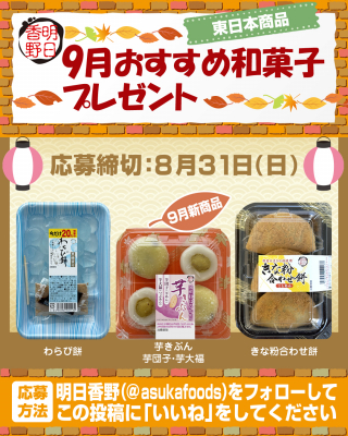 プレゼント企画!9月のおすすめ和菓子がもらえるキャンペーンを実施【8/18~8/31】