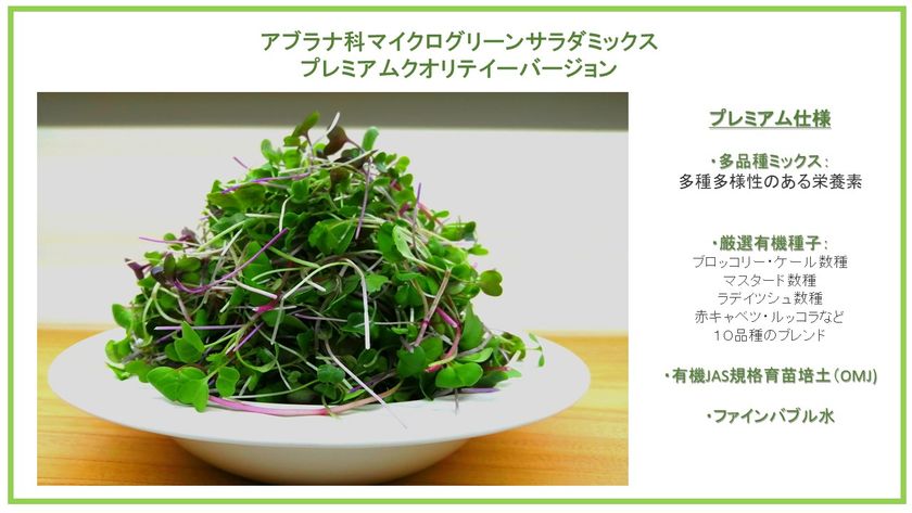 アブラナ科野菜の持つ優れたヘルスベネフィットに加えて新芽幼野菜が持ち合わせる有益な生理活性化物質の相乗効果を備えた幅広い微量栄養素を含むプレミアムなマイクログリーンサラダミックスがスーパーフードと呼ぶに相応しく、皆様の健康に寄与できればと願っています。