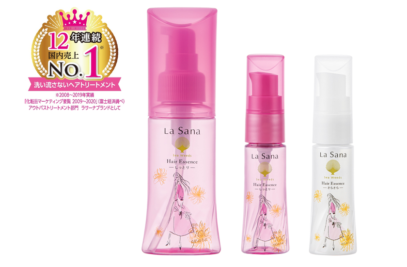 「ラサーナ 海藻 ヘア エッセンス」は、海藻をはじめ天然由来の美髪成分(※2)(※3)で構成した、傷んだ髪を集中補修するオイルタイプの洗い流さないトリートメントです。1998年発売以来、濡れた髪につけるだけで翌朝しっとりまとまるツヤ髪が手に入ると、ダメージ毛に悩む多くの女性にご支持をいただいてまいりました。現在、シリーズ累計販売本数は1,800万本(※4)を突破。今年、2020年に誕生から22年目を迎えた超ロングセラー商品として、ラサーナブランドをけん引しています。