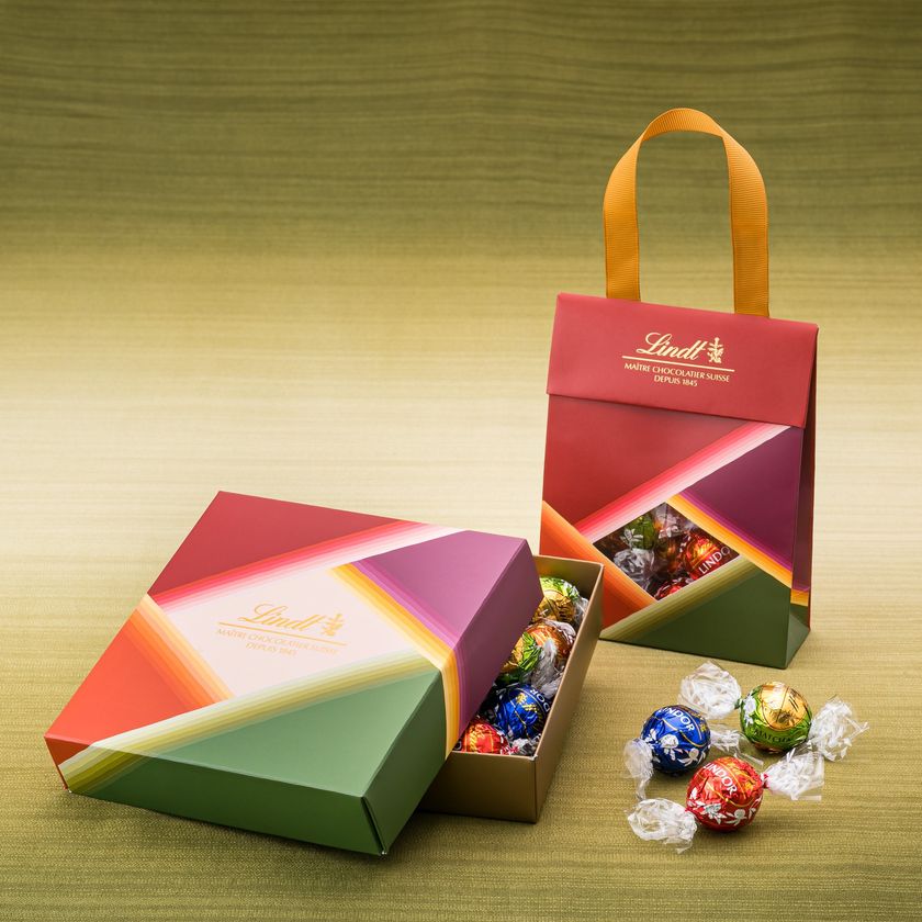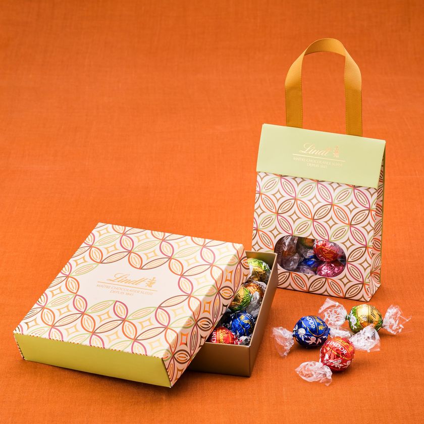 リンツ ジャパンの設立10周年を祝して登場する「JAPANコレクション」は、日本ならではのモチーフや伝統文様がデザインされたパッケージに、リンツ一番人気チョコレート「LINDOR リンドール」のミルクや抹茶をはじめとする人気フレーバーを詰め合わせた、和と洋がおしゃれに融合した、モダンで華やかなギフトラインです。贈り物として喜ばれる、縁起の良い意味が込められた、富士山、七宝つなぎ、扇散らし、かさね色目、のデザイン4種類からお選びいただけます。