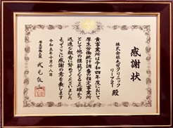 令和四年度の公的統計調査の実施協力にたいして、他事業所の模範となる正確かつ迅速なことが評価され、厚生労働大臣から感謝状が贈られました。大阪府30事業所の中から代表で壇上に上がり表彰状を授与致しました。