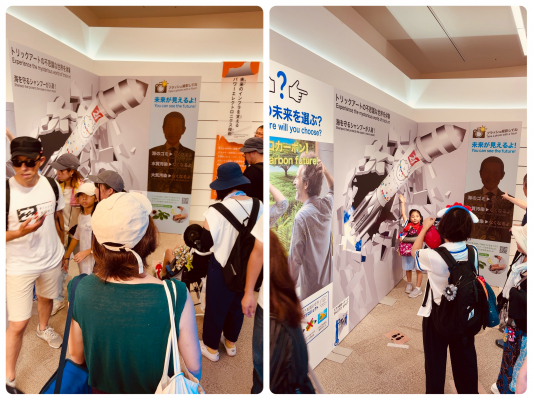 ●リーブ21スタッフのコメント「展示物のQRコードから資料を読み込んだり、英語の音声を聴いたりされている方が多く、当社のSDGs活動を知っていただけてとても良かった。撮影したトリック写真を見てお子さんのワー!っと驚く声にいやされました。社員達も大勢見に来てくれて嬉しかったです」