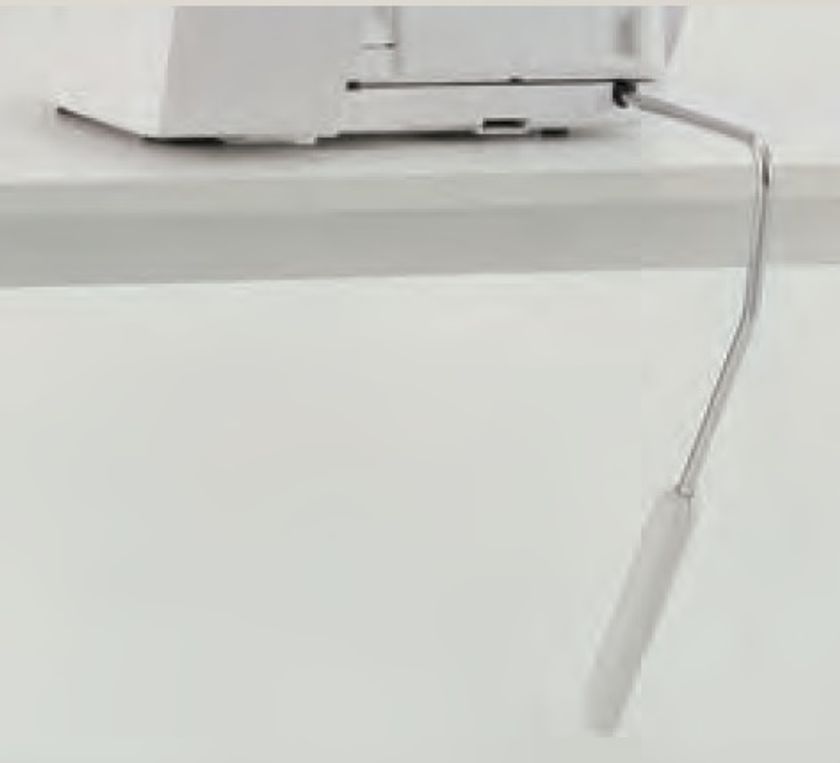 縫いやすさ・ソーイング環境の向上は、縫い始め時やカーブ縫いに有効な「押えの膝上げ機能」を採用しました。家庭用ミシン・職業用ミシンではおなじみの機能ですが、膝での操作により、押えの上下がスムーズになり、手元は縫いに集中できます。さらに、小回り押えを標準装備し、カーブ縫いの改善を図りました。また、巻き縫い時の糸調子も専用レバーの新設により、ダイヤル操作なしで簡単に設定ができるようになりました。