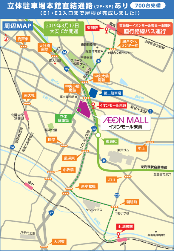 所在地 :三重県員弁郡東員町大字長深字築田510番地1 イオンモール東員1階