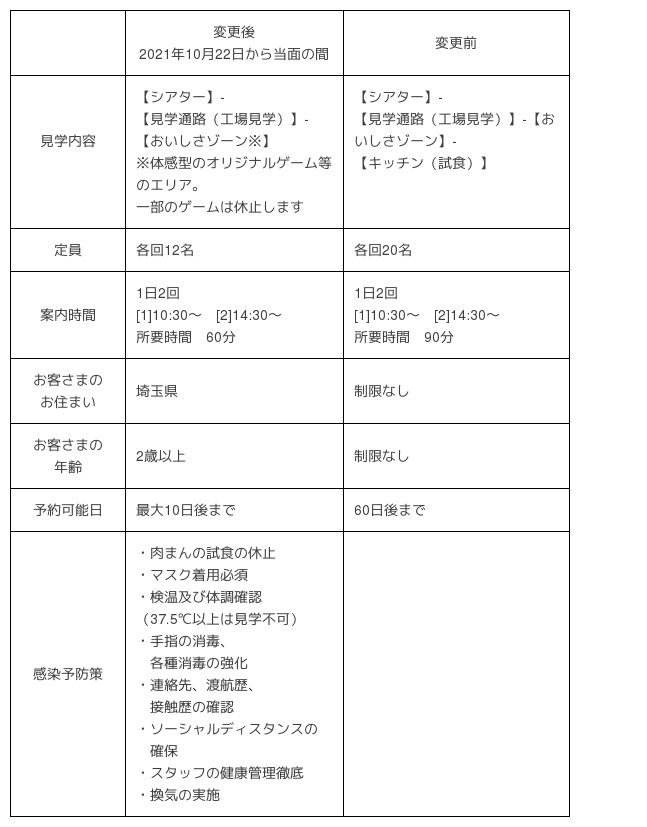 新型コロナウイルスの感染拡大防止のため、2020年3月から臨時休館し、一時、オンライン工場見学を実施しておりましたが、10月22日(金)より感染予防策を徹底し、一部内容を変更して見学者の受け入れを行い、運営を再開します。