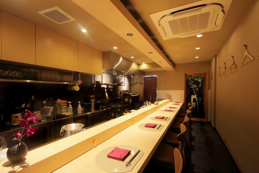 目の前で仕上げる料理のライブ感も感じながら風情ある町家で料理を楽しめる空間に仕上がったと自負しており、大切なゲストにも自信をもってお勧めを申し上げます。