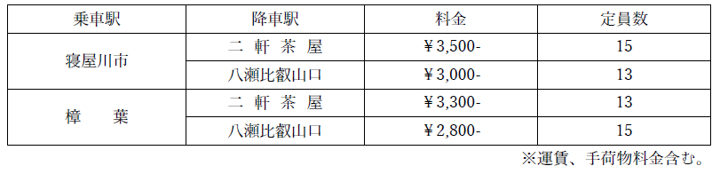 2.乗 車 駅 (京阪電車)寝屋川市駅・樟葉駅のみ